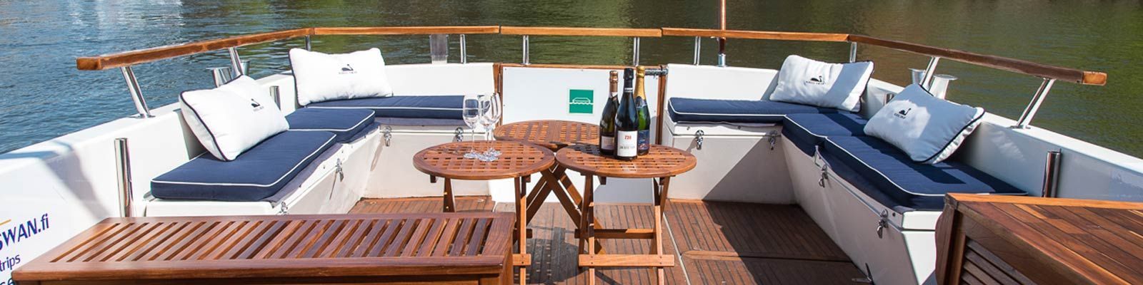 We arrange charter cruises from Helsinki for up to 35 people. The charter cruise goes wherever the customer wants. Our fantastic vessels sail for example to the beautiful Porvoo archipelago, even as far as Estonia! We have boats for many different needs, and the boats are helmed by highly-experienced skippers who, together with their crews, ensure your and your party’s comfort. Helsingin Venetaksi is a part of Nordic Swan Cruises, which takes care of the charter cruises.